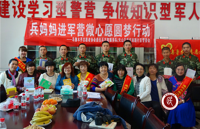 据“兵妈妈进军营微心愿圆梦行动”领队韩广宁队长介绍,这次活动得到了新疆双拥促进会、新疆双拥杂志社、乌鲁木齐市志愿者协会雷锋残疾志愿者车队、中国公益摄影师新疆站等单位和部门的支持。也是乌鲁木齐志愿者协会退伍兵志愿者服务队2016年以来连续第三次走进该部队进行的例行探亲活动。