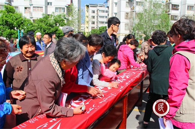 在民族团结百人签名活动中,辖区街道社区各族群众积极来到民族团结横幅前,郑重的签下了自己的姓名表示自己身体力行民族团结、促进社区和谐的信心和决心。