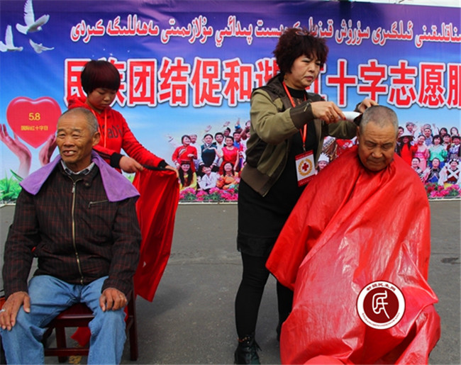 来自新疆乌鲁木齐志愿者协会退伍兵志愿服务队等多个公益社团的义工还以红十字会志愿者的身份为60余名社区居民提供了免费的理发和义诊等志愿服务。