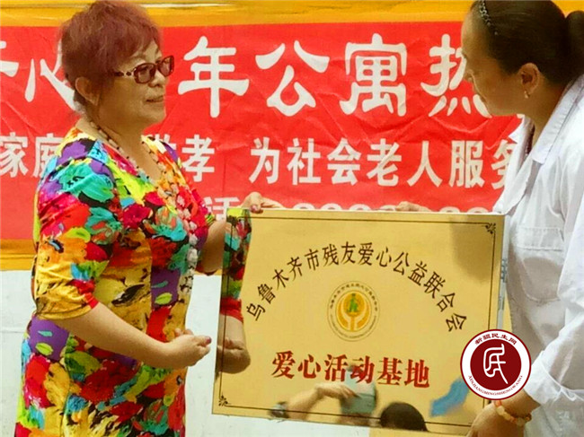 据本次活动主办方乌鲁木齐市残友爱心公益联合会会长王芳介绍,联合会班子成员在得知乌鲁木齐养老院戴姝萍院长自费赡养孤寡老人的感人事迹后,决定今后将定向对其进行帮扶。