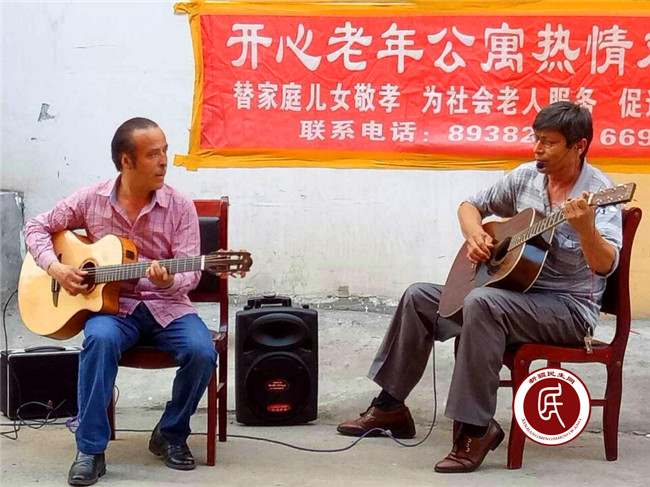 新疆民生网讯( 通讯员 许国平 赵爱华 田园) 7月8日下午,新疆乌鲁木齐市残友爱心公益联合会来到位于水磨沟区七道湾街道和景社区的乌鲁木齐开心养老院探望居住在这里的老爸老妈们,并为老人们带来了他们自编自演的节目逗老人开心。