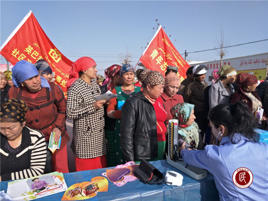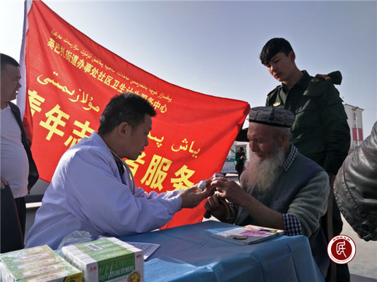 医生吐尔逊克孜·艾尔肯对社区干部帕力旦说:“我们结合‘学转促’活动,下到离城7公里的社区为辖区居民进行常规人群一般体格检查和普通疾病筛查诊断,同时开展通俗易懂的儿童妇女保健、传染病预防、慢病防治等健康知识讲座、免费义诊、免费发放药品等,目的就是落实党的医疗惠民政策,为偏远城区的各族群众办实事、办好事!”