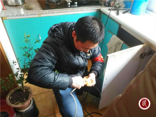 志愿者刘平大家都称是“刘工”,今天带着儿子来看望“妈妈”。父子今天的任务是帮助阿依孜.木汗大妈修理橱柜。