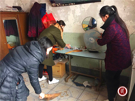 活动中,18名志愿者来到佃坝村一区的几户贫困户家中,为他们清理了室外的垃圾杂物,打扫了室内卫生,并为他们免费理发。