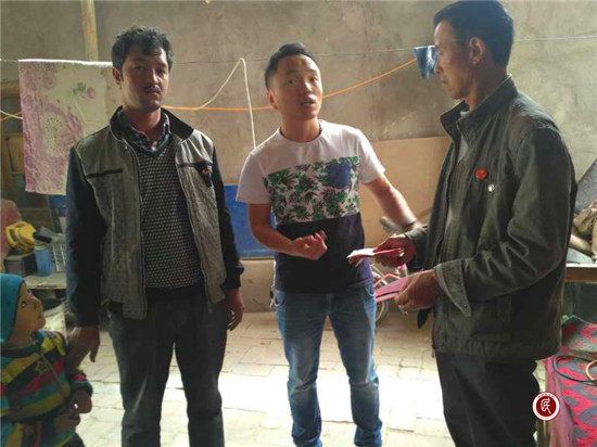 “谢谢,谢谢你的爱心,我给他说这民族团结一家亲帮扶好事。”村委会干部拿到捐款后激动地说。