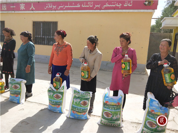 5月9日下午,阿克苏诚达公司经理等一行人来到尤喀克阿勒迪尔村慰问了贫困母亲。在座谈会上,阿克苏诚达公司经理对每一户贫困母亲都详细询问她们在生活中遇到的困难以及需要帮助的问题,并把情况详细记录下来,方便日后根据她们的实际情况采取切实可行的措施以帮助解决。鼓励她们要积极乐观地面对生活,树立坚强的信心,继续发扬妇女自立自强,坚韧不拔的精神,通过自身努力改变现状,并祝愿她们过一个欢乐祥和的节日。随后为每户发放面粉清油,让贫困母亲感受到党和政府的关爱。