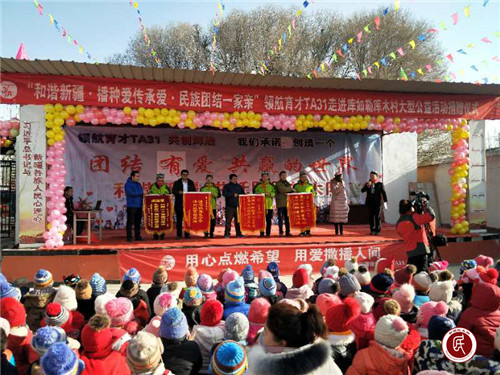 新疆民生网(辛乐)2018年12月13日,万木凋零,寒风刺骨,沙雅县英买力镇库如勒库木村却到处洋溢着温暖的气息,村委会的大院内充满了欢声笑语,一片沸腾,由乌鲁木齐领航育才T30、T31团队共同组织的爱心助学物资捐赠仪式在这里隆重举行,为全村的386名学生送去了冬日的关爱和温暖。
