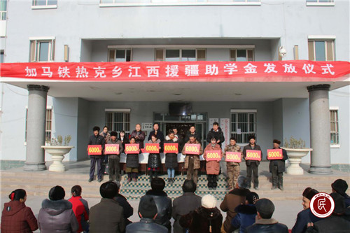 为深化民族团结和谐氛围,铸牢中华民族共同体意识,激励更多的学生实现理想。1月10日上午,在阿克陶县加马铁热克乡政府,举行了“加马铁热克乡江西援疆助学金发放仪式”,对我乡31名建档立卡疆外贫困大学生每户家庭予以6000元的资助。参加仪式的有乡党政领导、31名大学生及家长。