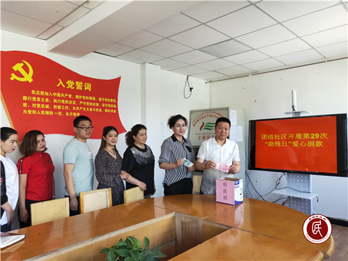 5月16日,阿克苏市执法局驻新城街道团结社区“访惠聚”工作队、社区“两委”组织开展第29个“全国助残日”爱心捐款活动,社区“两委”班子成员、“访惠聚”工作队队员、党员、干部都积极参与。