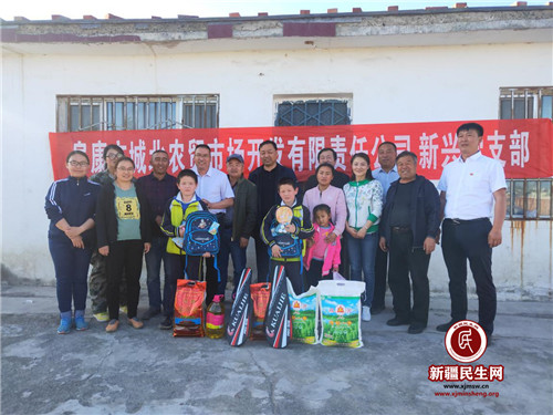5月29日这天, 爱心队伍带着书包、文具盒、铅笔、羽毛球拍、乒乓球拍等儿童节的礼物,在党支部书记张希成的带领下,新兴党组织成员、村干部、工作队来到了城关镇中心小学,孩子们拿着花花绿绿的书包、文具盒,爱不释手的像捡到了宝,哈萨克族小姑娘吾里江腼腆的小声说:“我想要粉色的小书包,粉色的文具盒。”刘兴堂说:“好!你喜欢哪个你自己挑。”在欢快和喜悦的氛围当中,大家不忘勉励孩子们,一定要好好学习,长大以后做一个对家乡、对祖国、对人民有用的人。