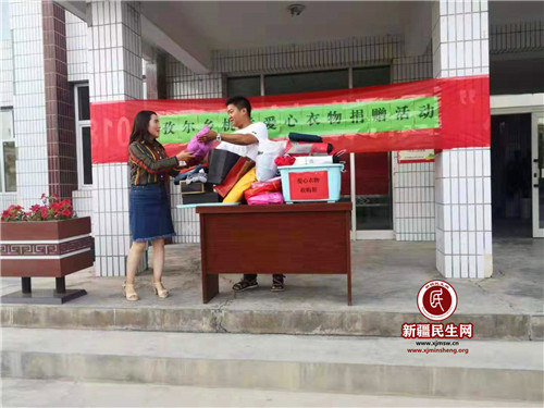 新疆民生网(冯运)一件衣物送出一份温暖,一颗爱心带来一份感动。7月18日下午,拜城县克孜尔乡机关开展勤俭节约、扶贫济困、低碳环保为主题的爱心衣物捐赠活动,每一件衣物,乡干部们都进行了提前清洗,确保了衣物洁净、完好、无异味,活动共筹集爱心衣物76件。