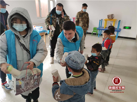 新疆民生网(周军、王延辉)2020年10月2日,对于新疆克州阿克陶县木吉乡昆提别斯村幼儿园的孩子们来说是个特别的日子,当天他们收到了从浙江省江山市启梦公益促进会发来的爱心礼包。这一礼物6月从浙江出发,历经3个多月,终于在国庆中秋“双节”前两天收到了,志愿者们迫不及待的开始整理擦拭这些横跨5千多公里从江南到南疆,从夏走到冬的暖心小包裹,为生活在帕米尔高原山脚下海拔3700多米的孩子们送去温暖而精心准备。