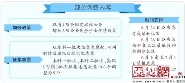 亚心网讯(记者沈祖啸)从本科一批次征集志愿起,可同时修改填报后续批次志愿,取消全国奖励性加分,增加公安民警子女优待政策……