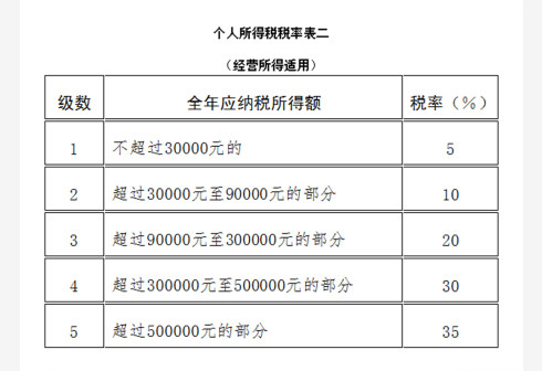 (二)经营所得,适用百分之五至百分之三十五的超额累进税率(税率表附后);