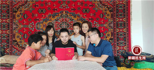 新疆民生网(赵斌 )“宪法序言,中华人民共和国是全国各族人民共同缔造的统一的多民族国家,平等、团结、互助的社会主义民族关系已经确立……”7月11日上午,在结亲户伊敏吾普儿家中拿着宪法读本给亲戚宣讲我国宪法的市场监管局干部李凌这样说道。