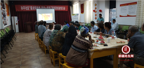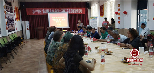 新疆民生网(李箴 王国泽)为了进一步加强邻里关系,巩固民族团结,弘扬互帮互助的新风尚,市委办公室驻天山路街道和平社区工作队与和平社区于2019年7月14日上午,举办了民族团结一家亲“情满盛夏”融情茶话会活动。