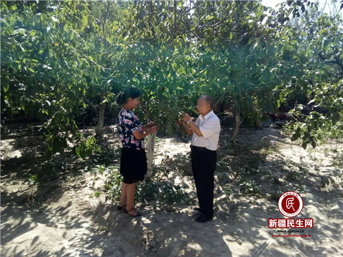 新疆民生网(乔岗)7月12日上午,阿克苏地区温宿县吐木秀克镇托万克托喀依村村民肉孜古丽·亚森给中国银行阿克苏分行驻村工作队副队长刘宝山发微信:”刘副队长,我家的核桃树上好像有虫子了,你能来看看吗?“刘宝山看到肉孜古丽的微信后立即回复:”好的,我马上就去。“她家是刘宝山的结对帮扶户。