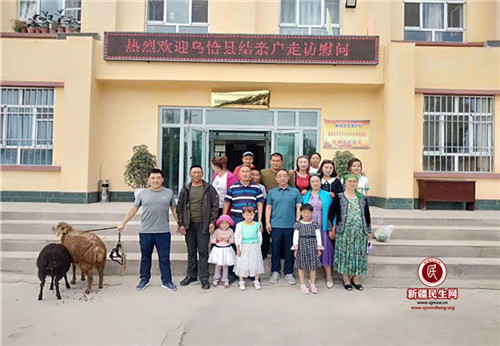 新疆民生网(佧米力江·托力干肯巴提 ·巴合提亚)2019年7月18日,克州路政管理局驻阿克陶镇奥达艾日克村工作队第一书记叶东海在乌恰的“亲戚”拉瓦罕·麦克塔普巴依,带着她的家人和亲戚来看望自己的结亲干部叶东海同志,开展了一次不一样的民族团结一家亲活动。