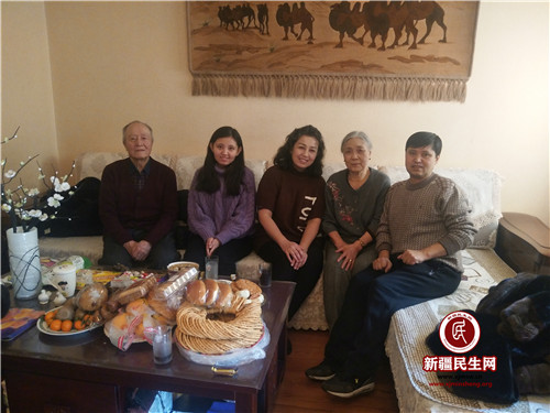 2018年,姜秀林的儿子从内地回来,在家里张罗一桌好菜,邀请波尼亚明一家人一起吃饭,就这样两家成为了一家人。每到逢年过节波尼亚明都会带着爱人和孩子一起带着馓子、点心去看望干妈。妻子阿里达·吐尔逊做饭手艺特别好,每次到干妈家,都会做干妈爱吃的抓饭,阿里达知道老人不能吃太硬的饭,每次都特意多加点水,做软一点,让姜秀林吃得满意。干妈在过年时候都会给波尼亚明的女儿夏来开提压岁钱,现在女儿已经上大学了,一放暑假就会到南林社区来看望奶奶,经常讲笑话逗奶奶开心。姜秀林说:“有了干儿子一家的陪伴,这个日子过得舒心!”