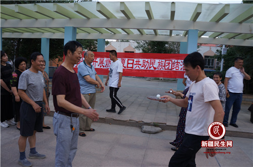 新疆民生网(王依丹)7月26日,克拉玛依区胜利路街道胜利社区工作队组织社区干部、工作队队员、结对亲戚、居民开展了一场“民族团结一家亲”趣味运动会,吸引百余名居民参与。