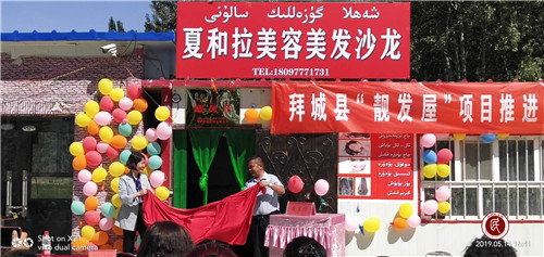 拜城县“靓发屋”项目推进会暨揭牌仪式在康其乡阿热勒村举行