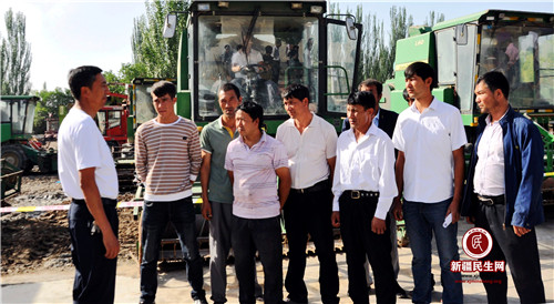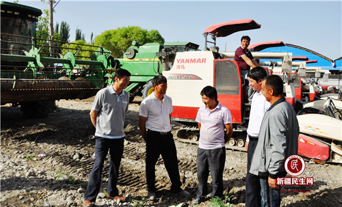 新疆民生网(颜寿林)6月2日,温宿县恰克拉克乡组织本乡联合收割机跨区收割小麦增加收入,乡领导强调安全作业事项。据悉,6月上旬,喀什地区小麦进入成熟季,该县恰克拉克乡主动与喀什地区小麦生产乡镇对接联系,由乡政府统一组织本乡70台联合收割机,164名农机手跨区收割小麦,在近一个月小麦收割作业期内,每台联合收割机可创收2万元。