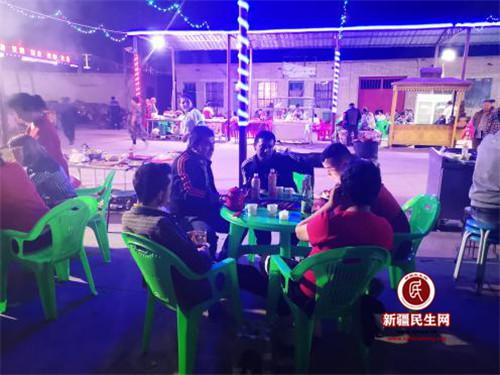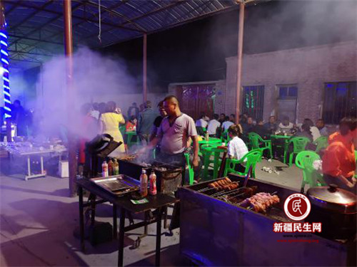 新疆民生网(刘扬)6月20日晚,伴随着夜幕降临,拜城县克孜尔乡乌堂村夜市正式开业了。夜晚的巴扎炊烟袅袅,灯火通明,来往的人络绎不绝,烤肉、凉皮、烤鸡、烤包子、羊肺子、格瓦斯等美味,吸引大批等待品尝美食的农牧民群众。据初步统计,当晚人流量就达1000人左右。