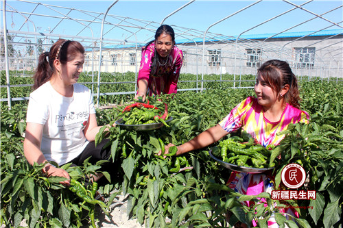 新疆民生网(颜寿林)625日,温宿县阿热勒镇托万克麦盖提村脱贫蔬菜种植基地的辣椒喜获丰收,农民喜上眉梢。为加快农民脱贫步找,今年该村采取因地制宜办法,为贫困户新建占地20亩60个刚筑大棚蔬菜种植基地,主要用于60户贫困户集中种植辣椒西红柿等蔬菜,由于指导到位,村民管理的好,平均每座大棚卖辣椒收入高达1500元。