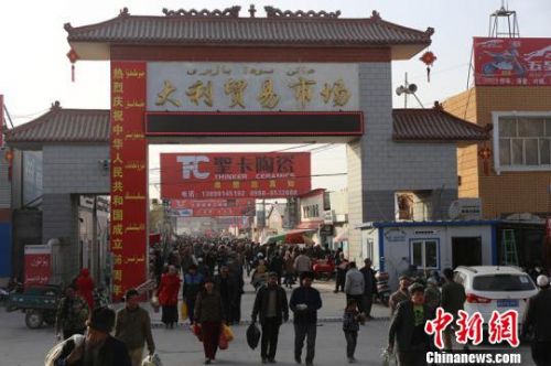 大利贸易市场旺盛的人气,也吸引了国外的淘金者。艾布比拉·艾力拉(译音)是个赶巴扎的巴基斯坦人,经常往返于伊斯兰堡和莎车,目前,在莎车做生意已经有5个年头。