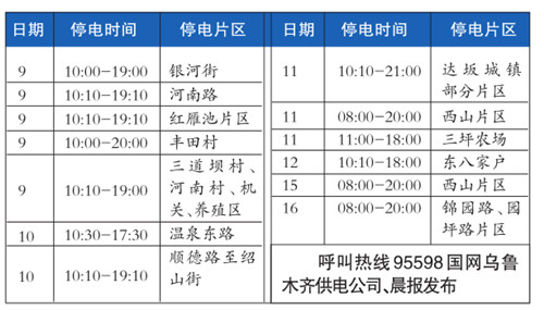 首页 >>民生图片 >>7月上旬乌鲁木齐这些片区停电