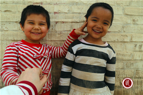 休假的时候我去康其乡政府后边的村庄拍远方的雪山,突然有两个非常活波的维吾尔小可爱跑到我的身边,用国语说着你好。刹那间,疲惫的心灵仿佛注入了一股甘泉,尽管孩子顽皮的天性让他们身上沾上了田地里的泥土,但我看着却是那么的亲切,忍不住用国语告诉他们给他们拍一组照片。捏住他们的小手,让他们随意摆弄各种姿势拍出了这两张非常有爱的照片。在单反里我把照片切出来给他们看,让他们知道自己是多么可爱,然后和我挥手告别!