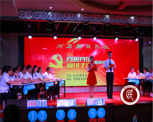 巴州教育党工委于6月上旬成立 “党规党纪刻印于心”知识竞赛组委会,加强领导,用心谋划,认真组织,抓好落实,确保了党员干部特别是党员领导干部参与率。本次活动共有13个参赛队参加,最远的参赛队是巴州石油二中代表队,从喀什泽普县赶来参赛;马兰中学代表队由书记崔丽带队,三名女性选手巾帼不让须眉;巴州蒙中代表队蒙古族女教师阿丽塔答题准确无误赢得在场观众的阵阵掌声。风险题环节气氛紧张而又激烈,在观众抢答环节中,现场观众踊跃举手参与,并为回答正确的观众送上了精美的小奖品,活跃了赛场气氛。经过激烈角逐后,巴州蒙中代表队战胜群雄,勇夺冠军,巴州石油二中、马兰中学获得第二名,州一中、石油一中、石油四中并列获得第三名。