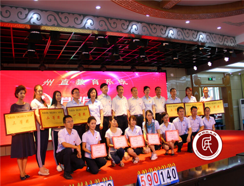 图为:获奖单位与教育局领导合影