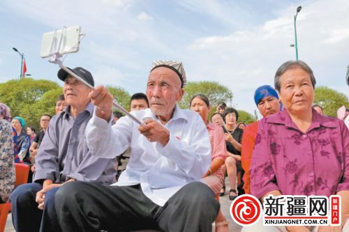 新疆网讯(记者周志东)在库车县比西巴格乡林场吾斯塘博依村,一位老人一直是村里的“明星”,虽然他没有昂贵的出场费,但是他走到哪里,哪里就充满了欢声笑语。他叫买买提·卡斯木,爱唱红歌的他,今年却开始研究手里的“高科技玩意儿”:手机和自拍杆。