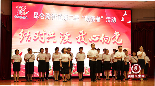 新疆民生网(阿丽娅·吾拉木丁)7月14日下午,昆仑路街道第二季“朗读者”活动在北师大附中礼堂正式拉开序幕。来自昆仑路街道各族居民组成的14支参赛队以“结对共读 我心向党”为主题,声情并茂地朗读中华经典诗词,表达了对伟大祖国和中国共产党的感恩之情。