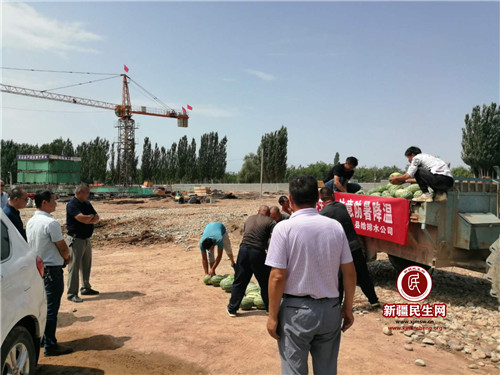 新疆民生网(李瑞)近日持续高温,为确保建筑工人的身体健康和建筑工地生产安全,8月1日,拜城县给排水公司组织开展了“送清凉、保安全”活动。拜城县给排水公司党组书记、经理彭一建和城投公司副经理杜胜利等一行,代表给排水公司对污水处理厂提标改造项目工程、输水管线工程等建筑工地奋战在高温下的建筑工人送去慰问和关怀。给排水公司相继将西瓜、纯净水等防暑降温物品送到建筑工友手中,让工友们感受到烈日酷暑下的清凉和关爱。