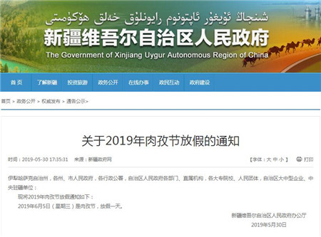 2019年肉孜节放假一天