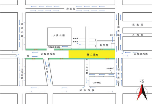 (二)施工道路沿线单位、居民的车辆,可通过古牧地西路两侧的停车场、非机动车道、人行道等道路绕行。