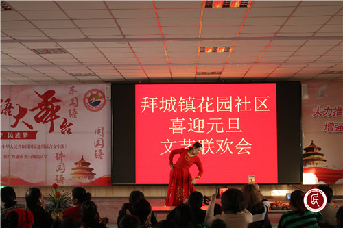 新疆民生网(曹春华)“我的祖国,人民勤劳,五十六个民族相濡以沫。你用实力、智慧、勤劳创造辉煌,我愿挽住你力量的臂膊共圆中国梦,我爱你祖国。”为弘扬中华民族优秀传统文化,积极营造欢乐、喜庆、文明的节日氛围,12月31日,拜城县拜城镇花园社区喜迎元旦文艺联欢会在诗朗诵《我的祖国》中拉开序幕。