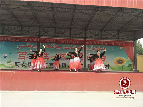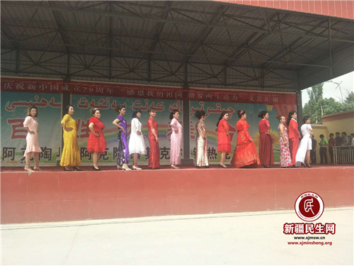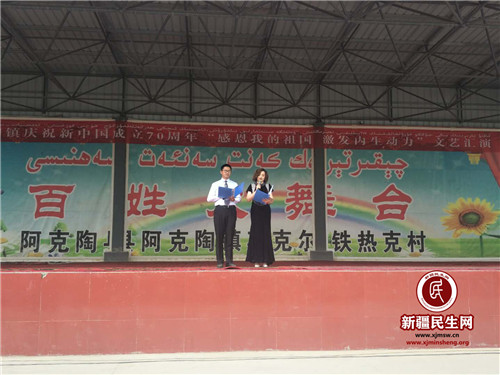 新疆民生网(邱阳洋)为响应新时代号召,庆祝即将到来的祖国七十华诞。5月21日,阿克陶镇在其克尔铁热克村举办“感恩我的祖国 激发内生动力”文艺汇演。