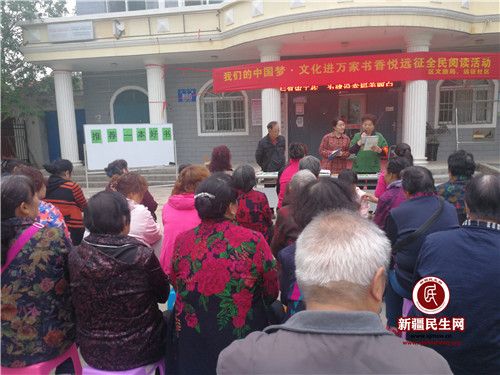 新疆民生网(麦迪娜·也斯木别克 热依汗古丽•吐尔逊)腹有诗书气自华,唯有书香最致远。中华民族的五千年文化史,在书香卷中沉淀,在传诵咏读中升华。为兴起全民阅读的积极氛围,5月25日清晨,白碱滩区(克拉玛依高新区)远征社区和联点单位区文旅局共同举办了“我们的中国梦·文化进万家书香悦远征”全民阅读活动,社区居民代表50余人参加。