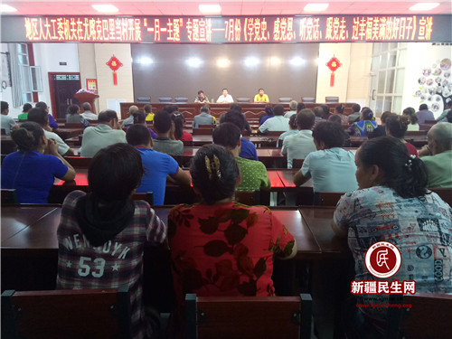新疆民生网(肖军)在中国共产党诞辰98周年之际和中华人民共和国成立70周年之际。7月28日,地区人大工委在尤喀克巴里当村开展“一月一主题”专题宣讲——7月份《学党史、感党恩、听党话、跟党走、过幸福美满的好日子》宣讲。地区人大工委法制处副处长、机关访惠聚驻村工作队员买买提·嘎依提在尤喀克巴里当村文化礼堂,面向全体村民群众,集中开展中国共产党党史、自治区各项惠民政策、改革开放四十年以来腾飞的中国三个方面的主题宣讲,全村干部群众310余人聆听了宣讲。