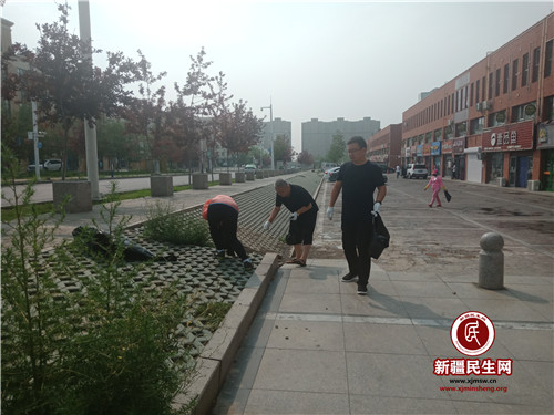 新疆民生网(马尔哈巴·吐尔洪江)为2019年八一建军节即将到来,为了给广大居民提供一个整洁、舒适、优美的生活环境,7月28日上午11时,东彩社区开展以“建国70周年”全民大扫除活动,环境卫生整治全民志愿行动。联点单位党员干部、红细胞党员、辖区物业和商铺,以及东彩社区全体工作人员,共40余名志愿者对辖区内的积存垃圾、卫生死角、堆物废料进行大清扫、大清理、大清运。
