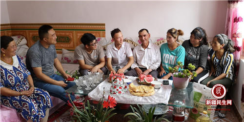 新疆民生网(温燕)7月29日,长城国兴金融租赁有限公司驻拜城县康其乡墩艾日克村驻村工作队和青年团员代表一起来到村里“光荣之家”——56岁的退伍老兵玉山·巴吾东家走访慰问,为他送去了面粉、清油等生活用品,祝退伍老兵“建军节”快乐。他向大家讲述了1981年在和田某部队当兵的历程并感谢党和政府对他及家人的关心关爱,嘱咐青年团员们一定要远离宗教极端思想,坚决维护新疆的稳定,听党话、跟党走,珍惜今天来之不易的幸福生活。在玉山·巴吾东的教育下,他的儿子亚生·玉山去年已经成为村里的一名共产党员。