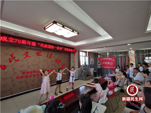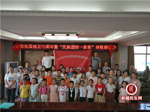 新疆民生网(赵棋)为迎接中华人民共和国成立70周年,传承和弘扬中华优秀传统文化,引导返乡学生弘扬新风正气,传递社会正能量。2019年7月23日,市自然资源局驻湖州路西社区“访惠聚”工作队邀请辖区结亲居民、组织返乡大学生和暑期中小学生举办了一场庆祝祖国成立70周年华诞暨“民族团结一家亲”诗歌朗诵会。