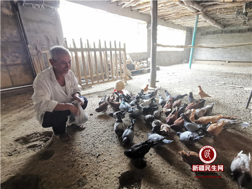 新疆民生网(张超)走进玉山家的庭院时,咕咕咕的叫声此起彼伏,玉山正忙着在鸽舍内给鸽子撒喂着包谷粒,成群的鸽子边吃边追逐嬉闹着,好一派安逸的农家庭院景象。