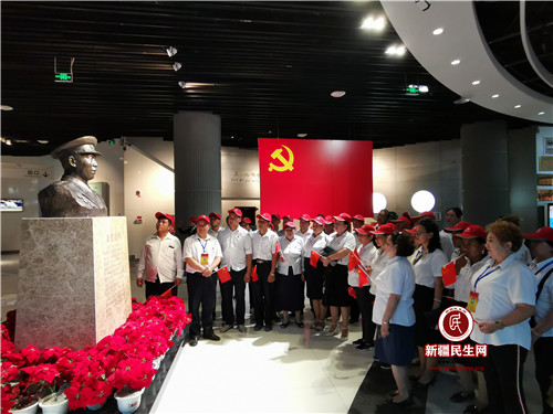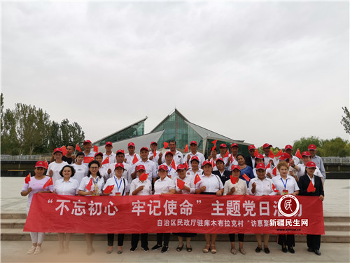 新疆民生网(王普)近日,为庆祝中华人民共和国成立70周年,自治区民政厅驻库木布拉克村工作队组织村两委干部、党员代表、群众代表等50余人开展“不忘初心,牢记使命”主题党日活动。大家来到阿拉尔市红色爱国主义教育基地三五九旅纪念馆,重温三五九旅发展历史,学习艰苦奋斗的兵团精神,感受新疆社会经济发展变迁,接受爱国主义教育,培养爱国爱党情怀。