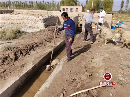 这样的药浴在吾斯塘布依村每年春秋各进行一次,在羊药浴过程中,防疫技术人员手持带钩的压扶杆,在浴池两旁控制羊只前行速度,将羊只头部压入药液内,使羊只全身浸透,保证药浴效果100%,同时“药浴”完的羊只必须留圈观察,确保羊只不出现中毒事件,以保证牧民的收入不受损。