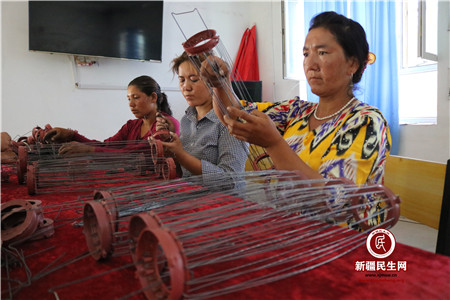 新疆民生网(李周樾)“阿达西(朋友的意思),再往上一点点,就那里……”9月27日,昂巴尔村,村民玛木提小组的村口,艾海提正忙活着挂国旗,老母亲和妻子在下面指挥着,不一会儿鲜艳的国旗就悬挂好了,伴着大红灯笼左右摇曳,显得格外喜庆。看着红彤彤的大红灯笼,艾海提一家感叹道:“真想不到大伙儿的手艺这么好,连灯笼都做的那么漂亮。”