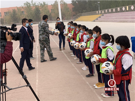 9月29日,在伟大祖国71岁华诞和中华传统节日中秋佳节到来之际,兵团“访惠聚”驻53团4连工作队(下文简称工作队)到53团第一小学开展以足球类为主的体育用品和学习用品捐赠活动,共度“双节”,传递兵团竞技体育运动学校、石河子大学对南疆团场教育事业及体育运动,尤其是足球运动的牵挂、关心与祝福。